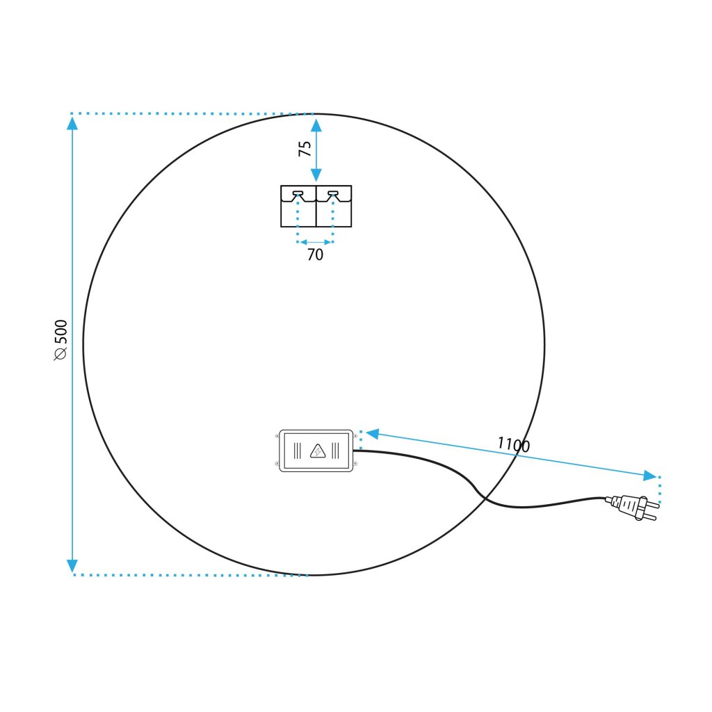 Zrcadlo ⌀50 cm s vyhříváním a regulovatelným LED osvětlením HOM-05517