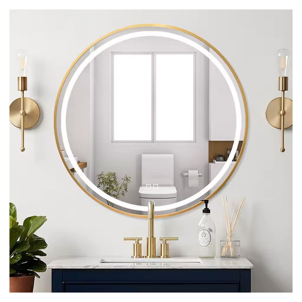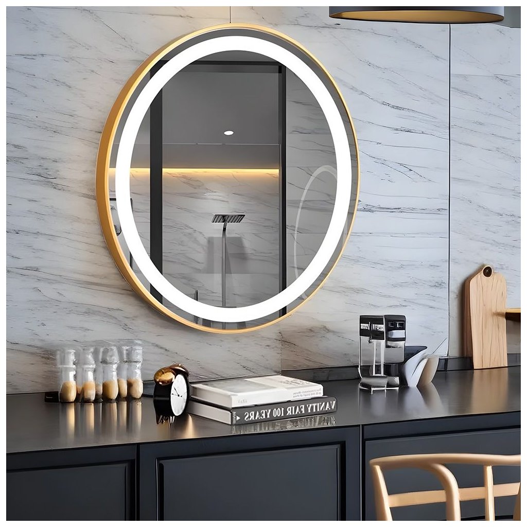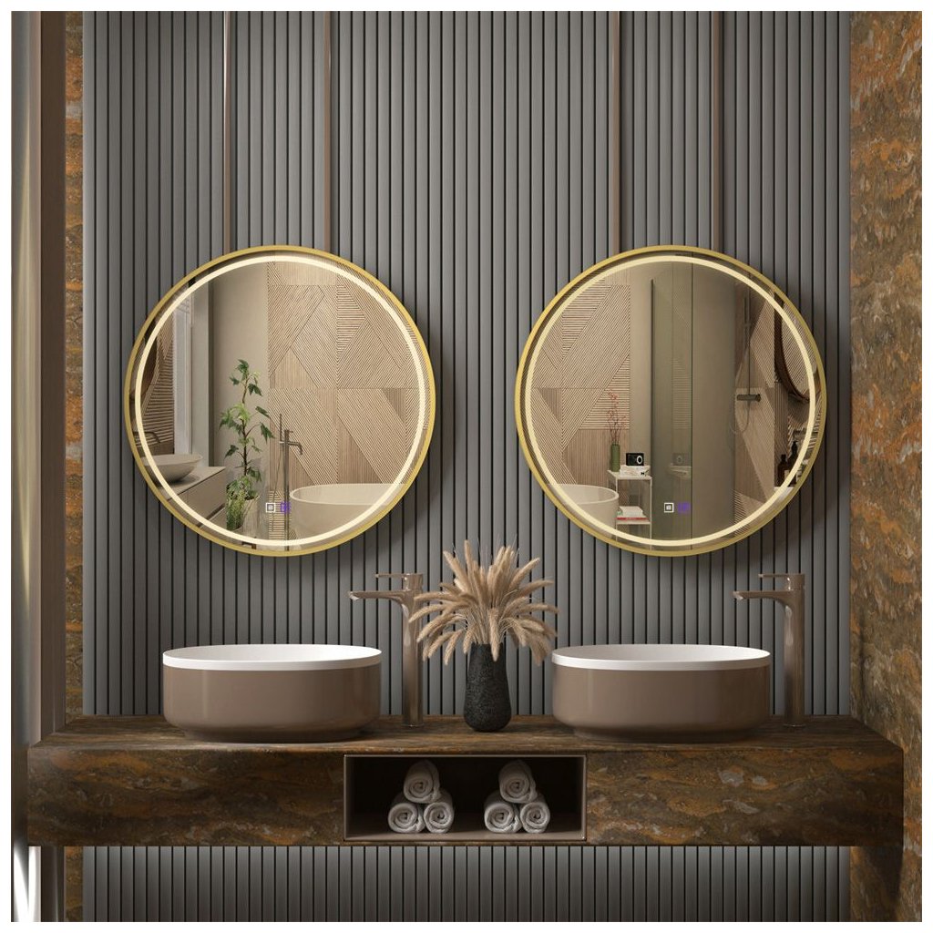 Zrcadlo ⌀70 cm s vyhříváním a regulovatelným LED osvětlením HOM-02502, zlaté