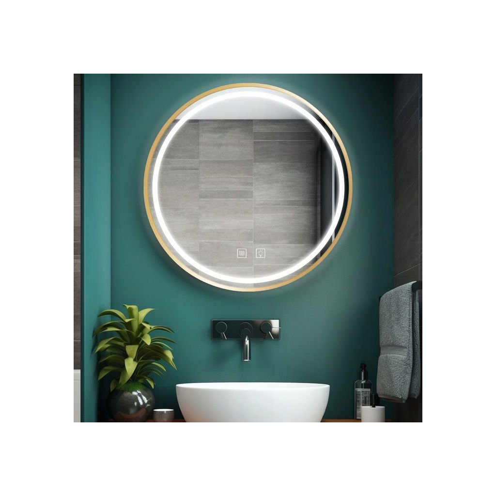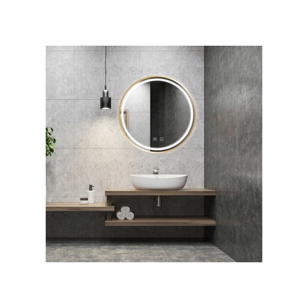 Zrcadlo ⌀90 cm s vyhříváním a regulovatelným LED osvětlením HOM-05510, kartáčovaná růžová zlatá