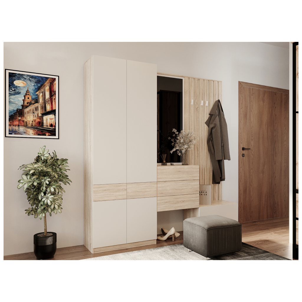 Zrcadlo VERTIO LUS63 v atraktivním provedení dub sonoma v kombinaci s kašmírem představuje stylový a funkční doplněk pro váš interiér. Jeho moderní design a čisté linie snadno zapadnou do různých typů místností, od předsíní až po ložnice, kde vytvoří pocit většího prostoru a prosvětlí celé okolí. Pečlivě zvolená barevná kombinace dodává nábytku nádech elegance a nadčasovosti.
