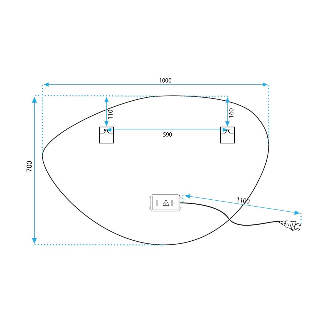 * První fotografie ukazuje reálný vzhled zrcadla. Ostatní fotografie mohou vyobrazovat tvarově podobné zrcadlo umístěné v aranžmá koupelny.Nástěnné koupelnové LED zrcadlo s dotykovým vypínačem 70x100 cm