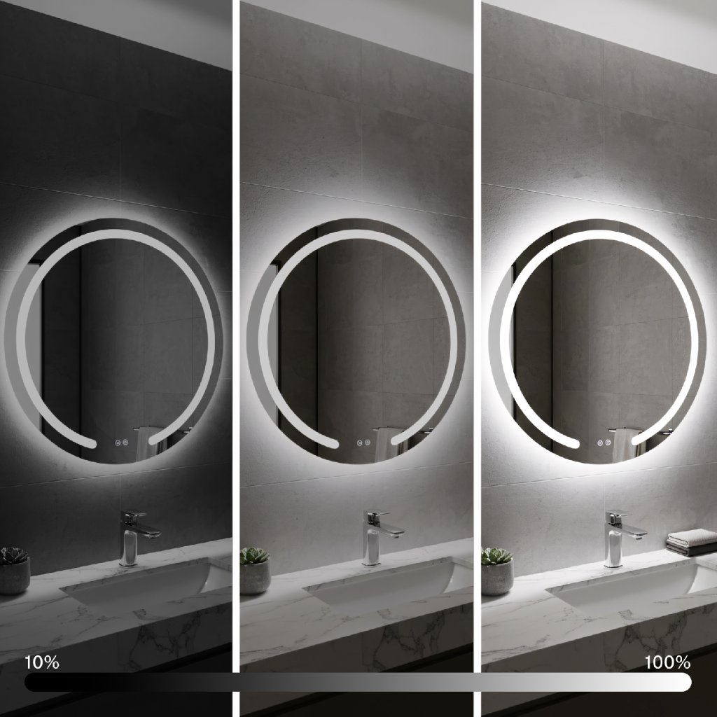 Zrcadlo nabízí velmi snadnou možnost personalizace barvy osvětlení. Změna se provádí pomocí krátkého stisknutí dotykového tlačítka na zrcadle a je velmi intuitivní. Současně lze také u zrcadla ovládat dlouhým stisknutím (přidržením) dotykového vypínače intenzitu osvětlení na podsvětleném tlačítku.